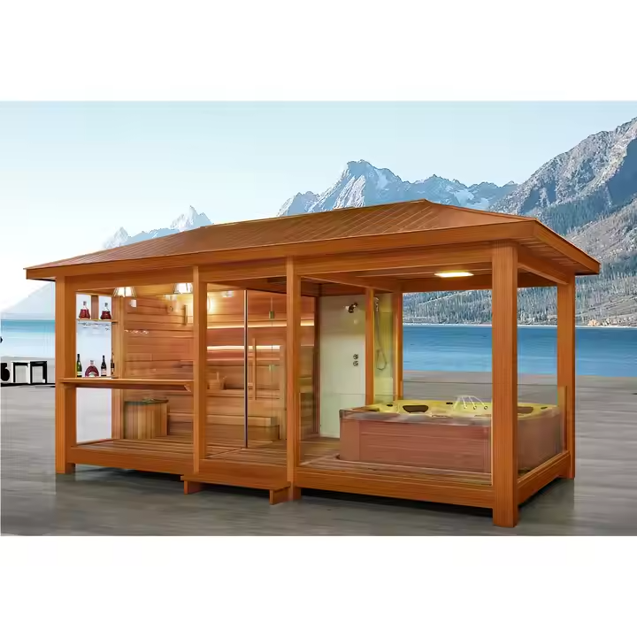 Особой популярностью пользуются газебо, включающие в себя сауну и душевую кабинку. Такие комплексы превращают открытый отдых в настоящий SPA-ритуал, позволяя расслабиться и восстановить силы на свежем воздухе.