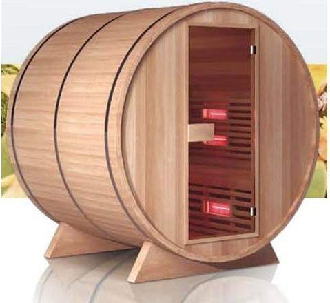 Баррель-сауна с комбинацией традиционной печи и инфракрасными нагревателями. Можно использовать как в помещении, так и на открытом воздухе. Поверхность дерева устойчива к атмосферным воздействиям, водонепроницаемая, защищена от УФ-лучей, от плесени. Устойчивая и безопасная. Стеклокерамические нагреватели.