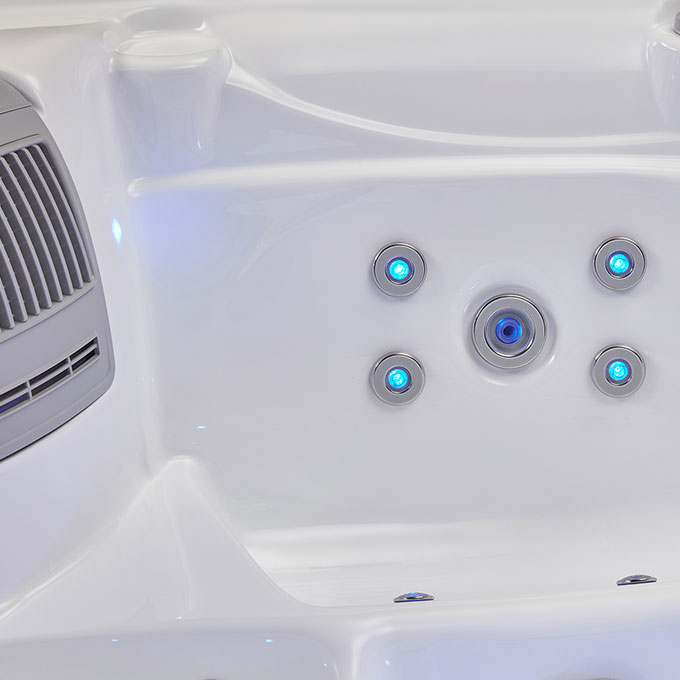 Оснащенный насосом 1500W LX и нагревателем 3000W LX, спа-бассейн обеспечивает интенсивный водный поток и стабильный нагрев воды. 31 точно расположенная форсунка создает эффект профессионального массажа, снимая напряжение с мышц спины, плеч и ног.