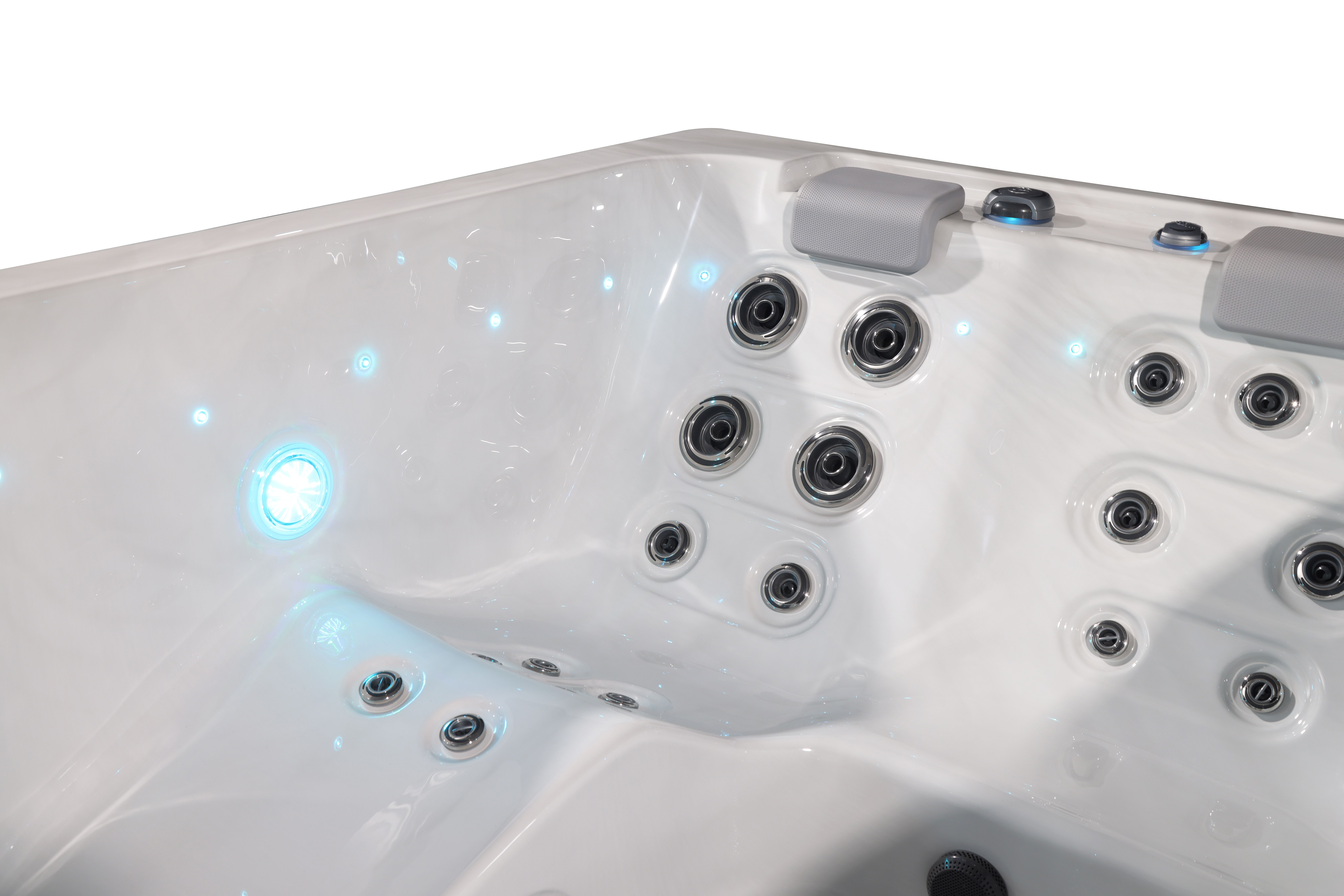 Хорошо продуманная система освещения превращает вечерний отдых в эстетическое наслаждение. Многоцветная подводная подсветка Northern Lights, дополненная изящной подсветкой ватерлинии, создает сложную игру света на воде, способствующую глубокой релаксации и визуальной гармонии.