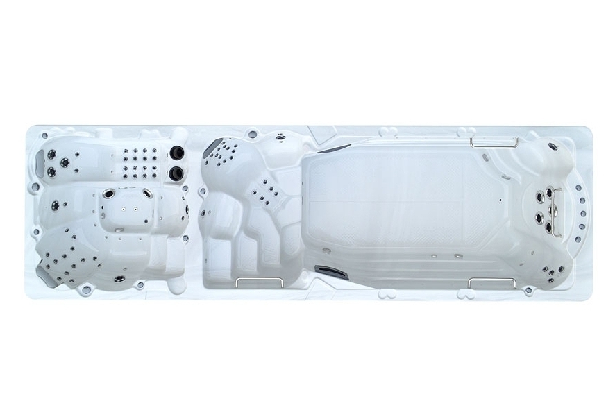 Это полностью готовое решение для тренировок и отдыха. Мощную систему гидромассажа, создающую невероятный комфорт в спа-зоне, обеспечивают 101 форсунка. Эффективный массаж и мощные водяные потоки создаются четырьмя производительными насосами: два насоса мощностью 2,2 кВт для спа-зоны, и два мощных насоса: 2,2 кВт и 2,9 кВт для плавательной зоны, что позволяет создать идеальное встречное течение для плавания.